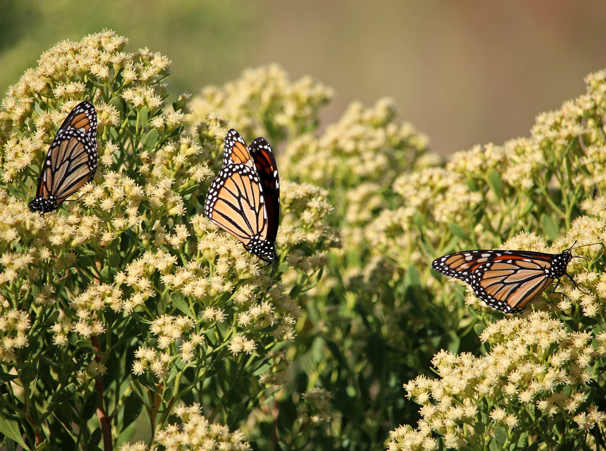 Along the Emerald Coast where I live and work, we witness an interesting split in migration. According to this map, Monarchs originating in the north travel to southern Florida to end their migration, while others fly much farther across the United States to end in Mexico. On the Panhandle, it can be difficult to know the final destination of the monarchs I see, and there are theories that some of the butterflies may take off across the Gulf itself. Since this is my first fall season here, I’m not sure how long I have until they disappear for another year.