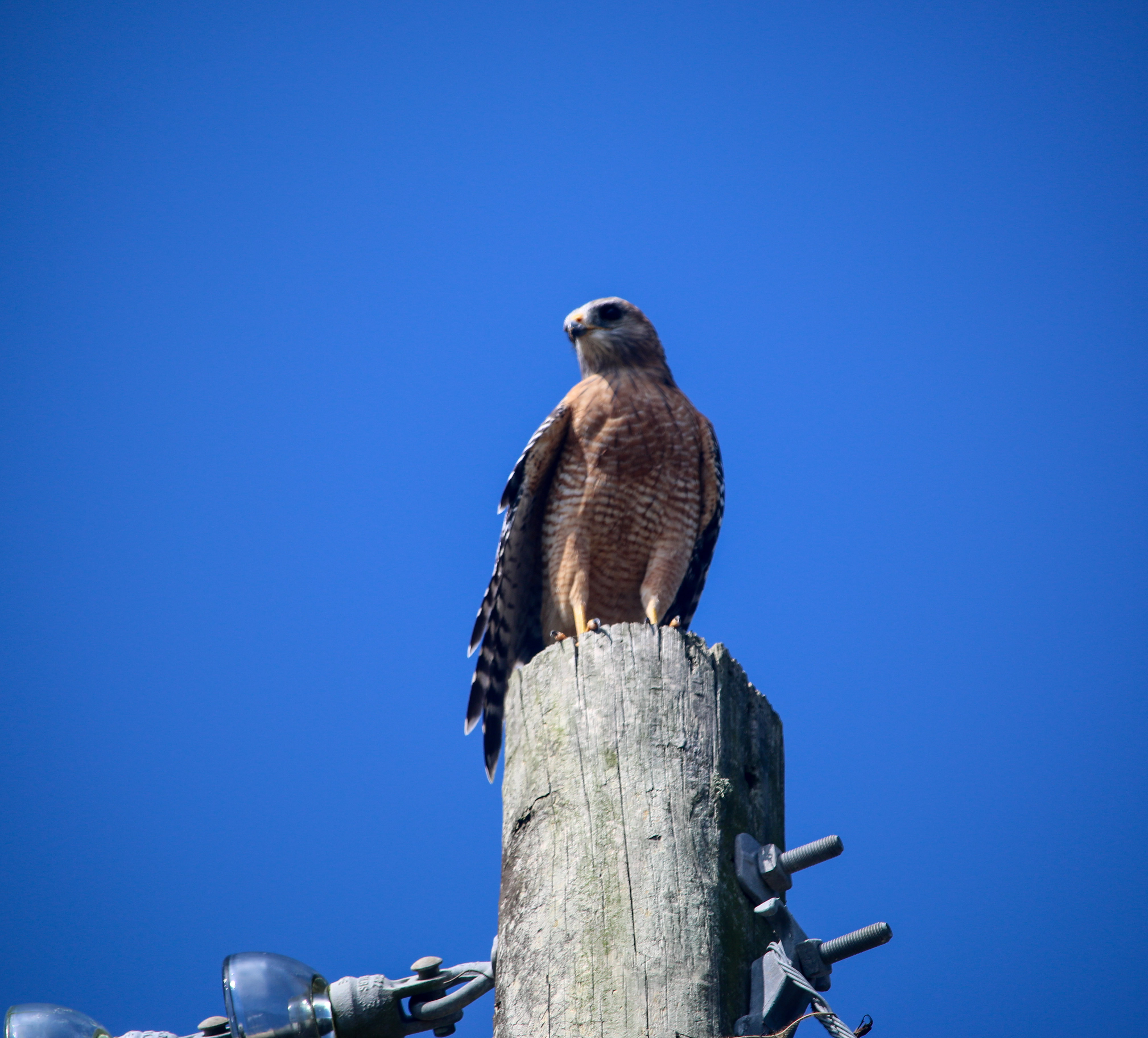 A four year old probably won’t be searching the leaves for bird silhouettes as actively as you, but that doesn’t mean they can’t participate. I had my Canon camera with me, and Braiden wanted to take pictures too. I handed him my smart phone, and for the rest of the trip he was the professional photographer. Near the lake we spotted a Red-Shouldered Hawk on a light pole, and he took multiple pictures as we strode by, reveling in all the angles (luckily the hawk just sat there gazing at us). He also took a rather nice photo of the lake, and when we rested on a shady bench we could compare photos. It was fun!