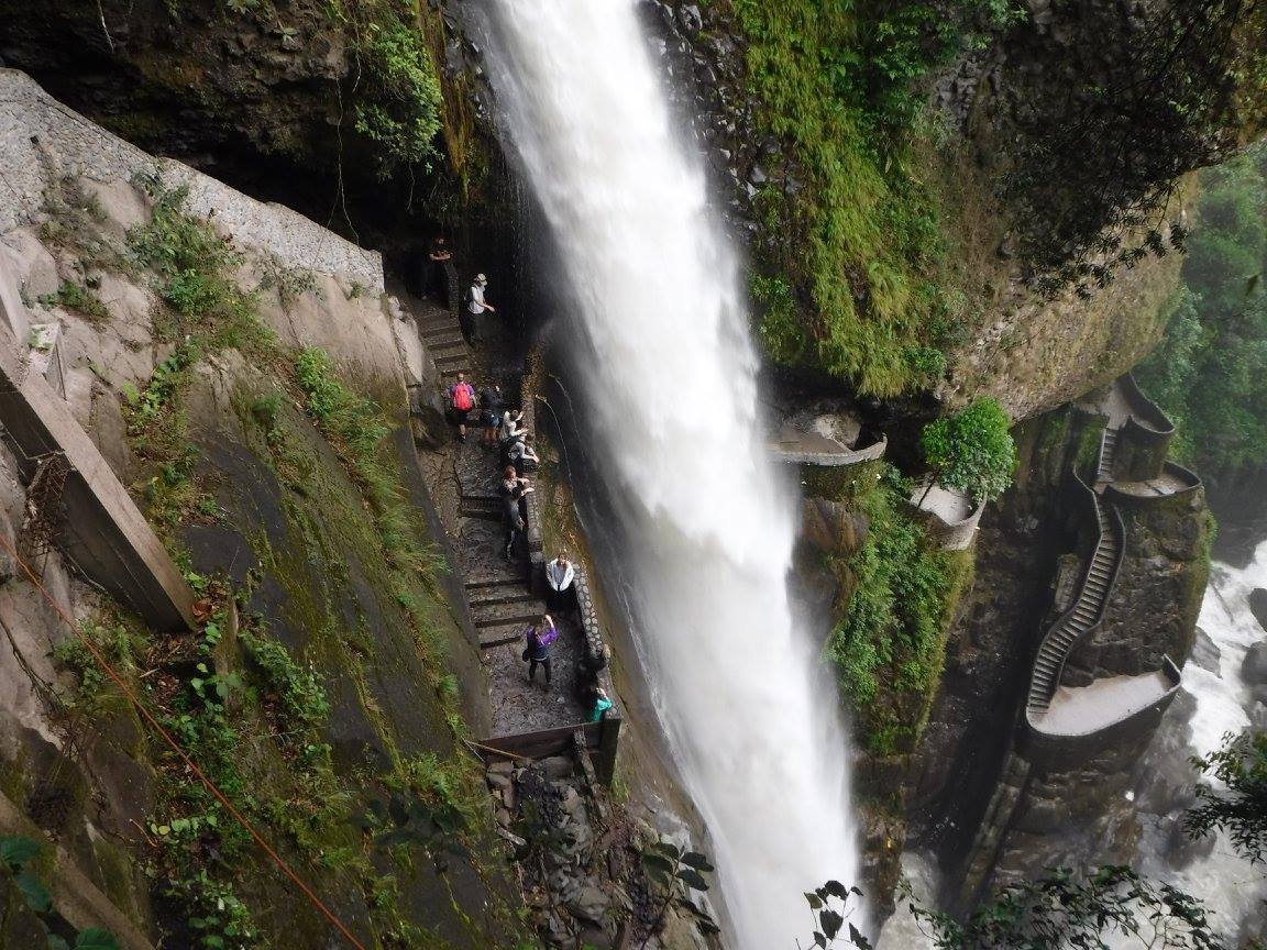 Pailon del Diablo, or, Devil’s Cauldron, is a large waterfall located in Baños, Ecuador. Worked into the mountain where it falls, there are a series of walkways and wooden bridges which leave you swinging high above the earth. The water originates from Rio Verde before taking its plunge. Baños has a lot to offer visitors including zip lining and rafting, as well as hikes and walks such as the one to this waterfall.