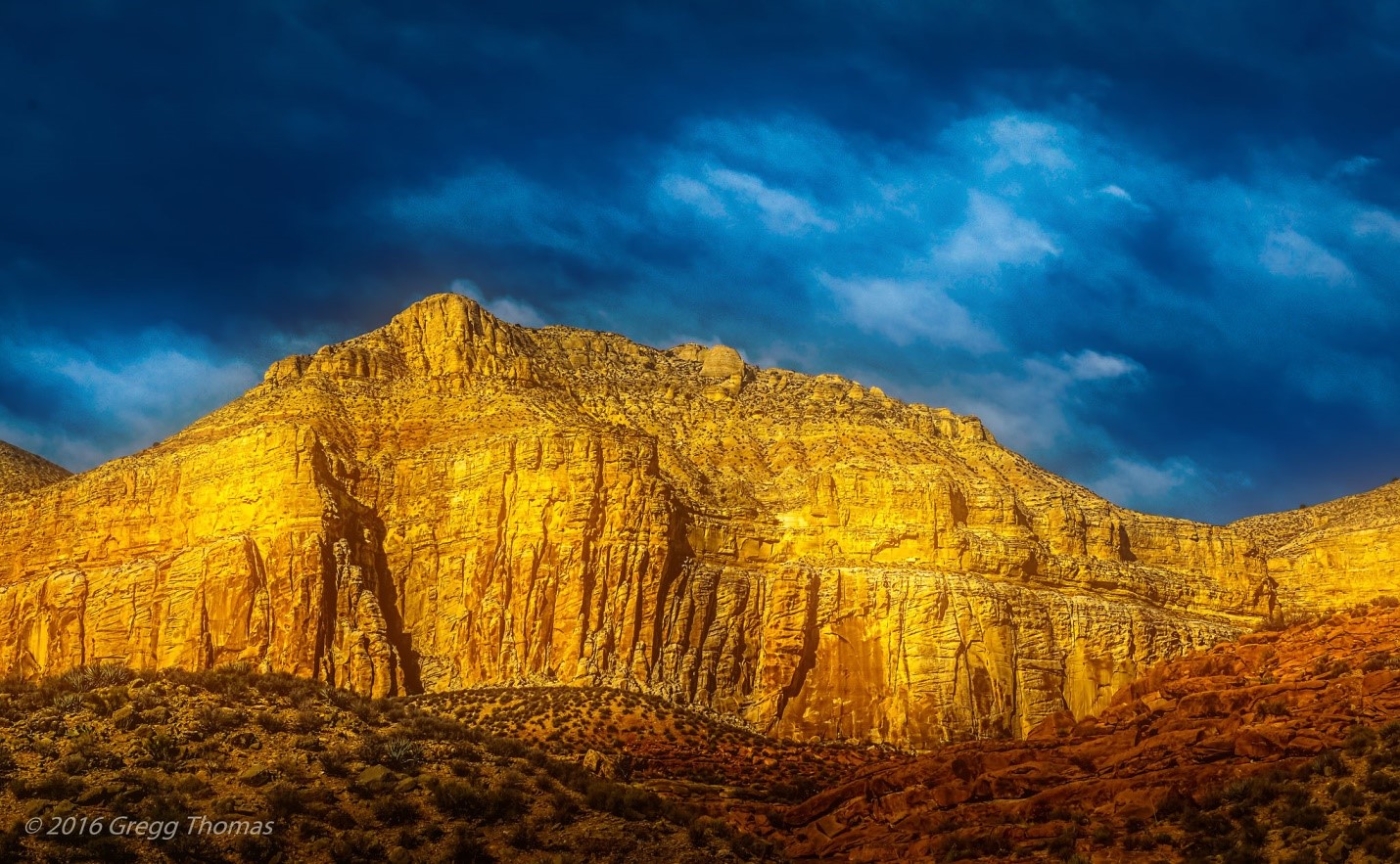 The shot above was taken from down in the wash, again looking back to the west. The white bluff in the background, from my kindergarten level understanding of the complex geology of this area, is a mixture of white limestone and sandstone. I believe the rock in the foreground is redwall limestone, colored the way it is due to the high amount of iron mineral in the rock.