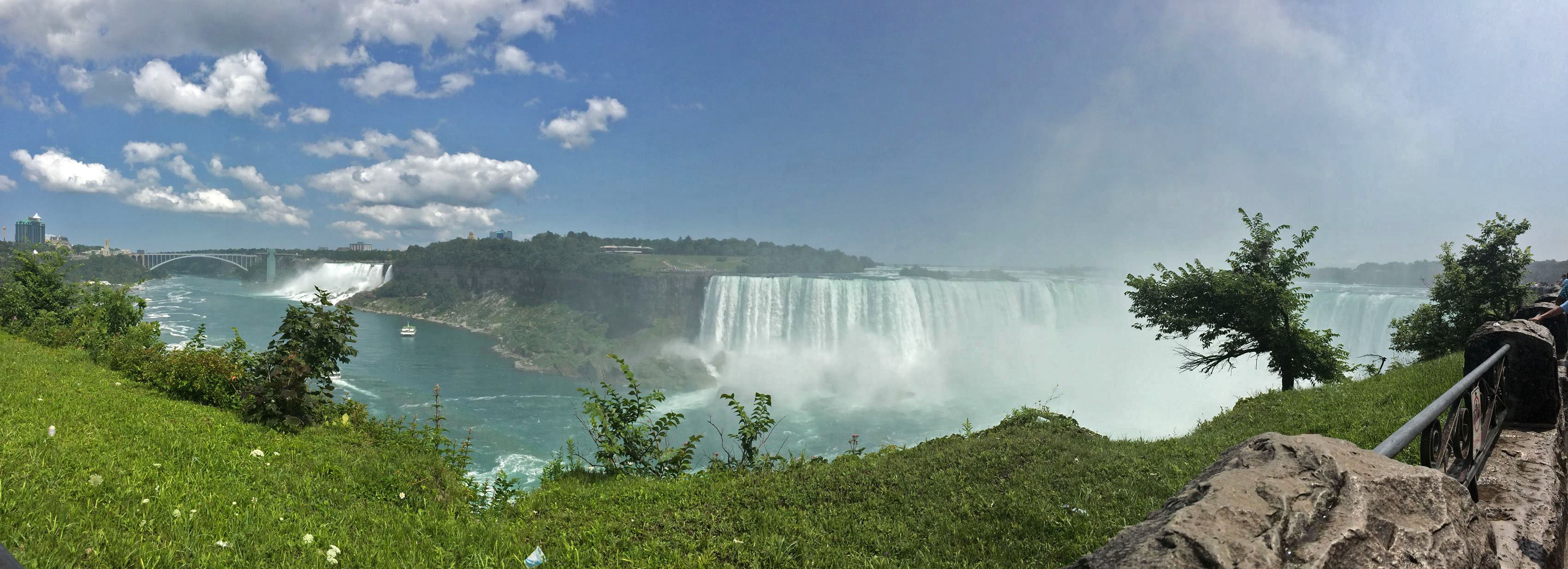 After finishing the first leg of our northeast road trip, Jessie, Kathryn, and I got to experience this view of the Canadian side of Niagara Falls. Formed by receding glaciers, the three sets of falls that make up Niagara Falls – Horseshoe Falls (on the far right in this photo, on the Canadian side), the American Falls (far left), and the Bridal Veil Falls (to the right of the American falls but hard to discern here) – have the highest combined water flow rate of any falls in the world, which is pretty amazing! After snapping a few photos and stretching our legs, we headed to Toronto, Montreal, Burlington Vermont, and Acadia National Park in Maine (our keynote destination).