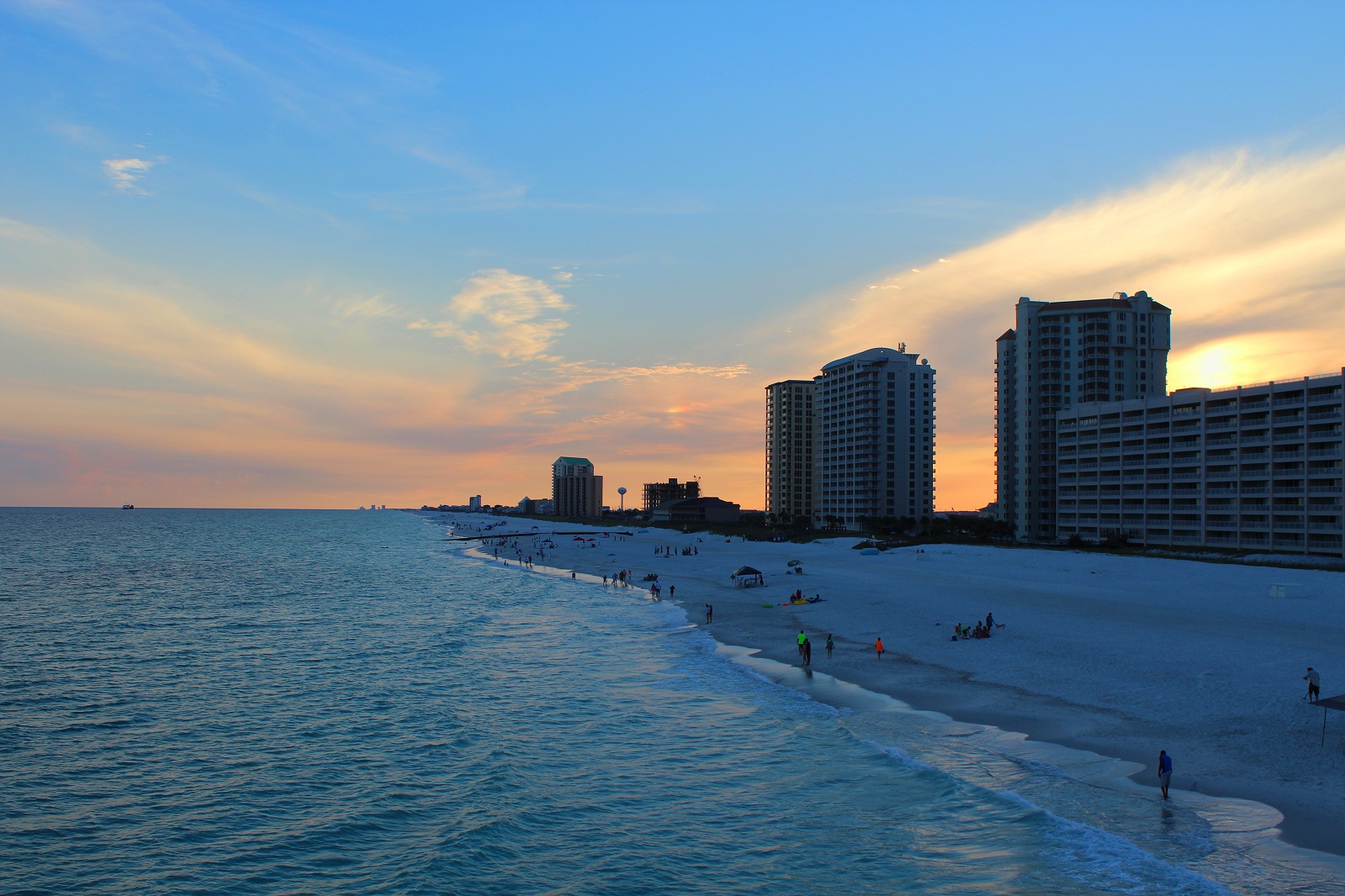 The sun set on Navarre Beach, Florida on a breezy Friday evening. They have just finished a beach restoration project, and the sand is nearly twice as wide as it was a few weeks ago!
