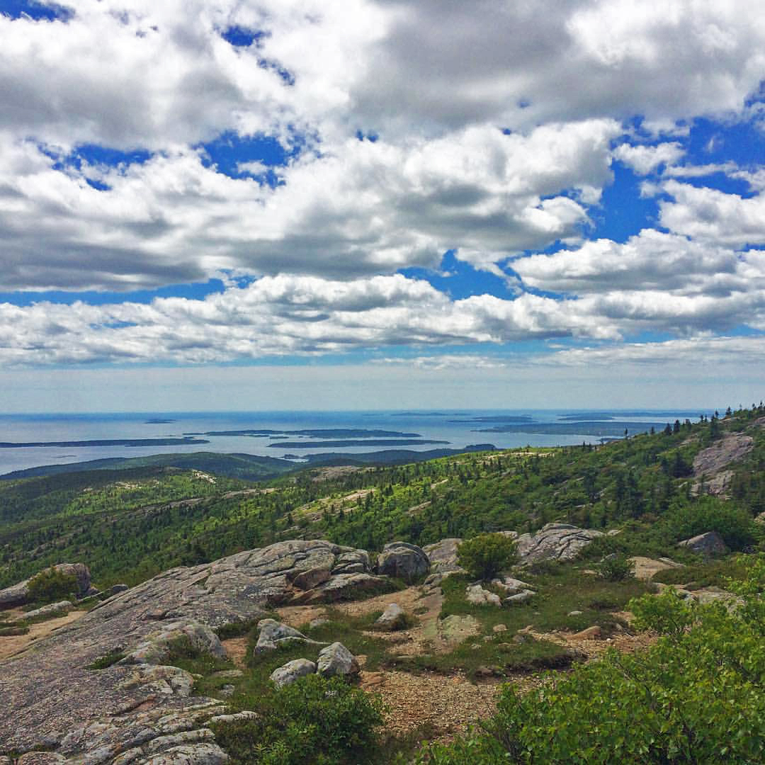 This photo is from the top of Mount Cadillac, the highest peak in Acadia National Park. The view looks down on the South Ridge of Cadillac towards Swans Island the surrounding islands.