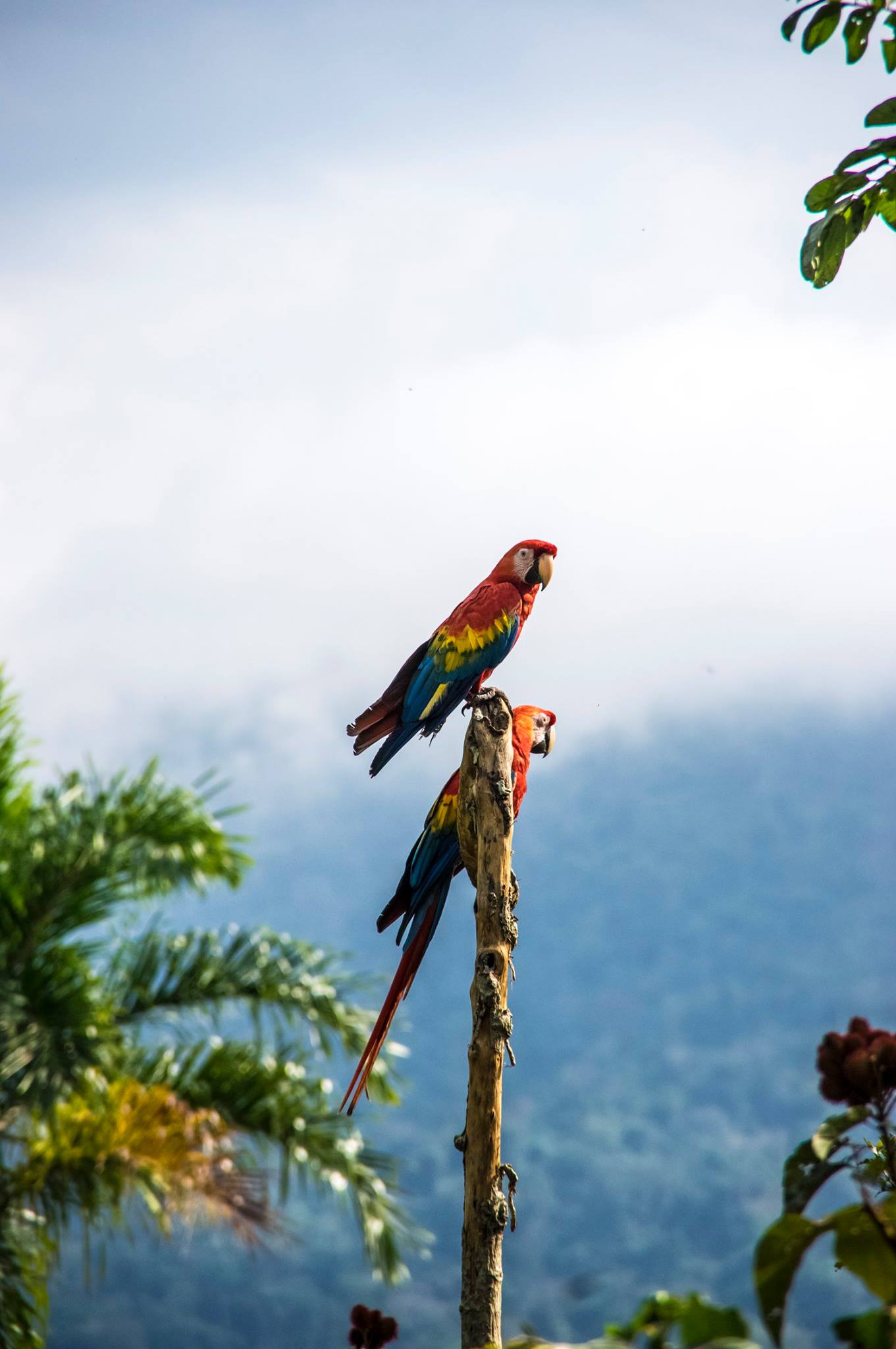 Scarlet Macaws are beautiful birds, but deforestation and other negative human impacts could affect their future. I spotted these two at a wildlife refuge in the Peruvian Amazon.